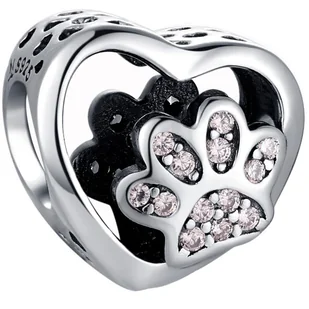 Cechy produktu: Materiał: Miedź powlekana srebrem techniką amélioré Wysokość: 10 mm Szerokość: 10 mm Waga: 1,5 g Piękna posrebrzana zawieszka, charms o motywie serca z łapką pupila , która dzięki ozdobieniu różowymi cyrkoniami będzie pięknie się mienić na każdej dłoni.