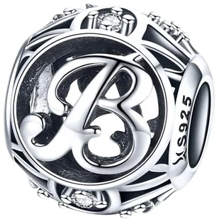 Cechy produktu: Materiał: Srebro próby 925 Wysokość: 10 mm Szerokość: 9 mm Waga: 1,3 g Zachwycająca i finezyjnie wykończona zawieszka, charms z umieszczoną pośrodku literą B uzupełnioną wokół o drobne, białe cyrkonie, które będą pięknie mienić się na każdej dłoni. Idealnie pasuje do bransoletek modułowych.