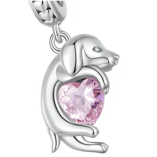 Subtelny różowy kamień dodaje zawieszce delikatności i uczuciowego charakteru. Charms Piesek świetnie sprawdza się jako prezent dla kogoś, kto kocha zwierzęta, lub jako osobisty amulet przypominający o ukochanym pupilu. Nasze charmsy są w pełni kompatybilne z bransoletkami Pandora, dzięki czemu łatwo włączysz ten model do swojej kolekcji charmsów Pandora. Dlaczego warto wybrać charms Piesek? wzruszający motyw psa trzymającego serce – wyraz miłości i przywiązania różowy kryształ w kształcie serca – delikatny, emocjonalny akcent idealny dla miłośników zwierząt i biżuterii z przesłaniem