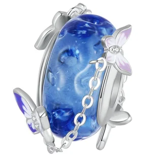 925 oraz pięknego barwionego szkła przedstawiający motyle. Idealnie pasuje do bransoletek modułowych typu Pandora lub innych marek, ale także jako zawieszka do naszyjnika. Świetnie nada się jako prezent!