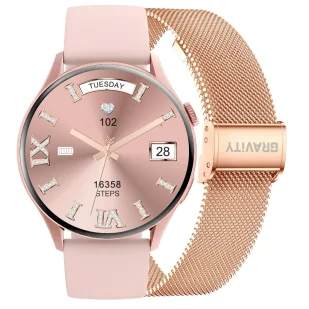 Smartwatch Gravity Różowe Złoto Pasek + Bransoleta GT11-5
