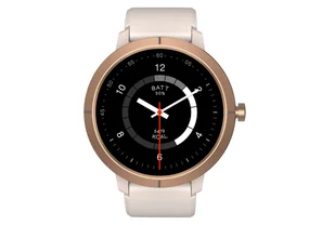 Silikonowy (wymienny) Wymiary i Waga: Wymiary koperty: 43. 5mm x 43. 5mm x 12. 2mm Waga: ~32g (sam zegarek), ~49g (z paskiem) Przyciski: 1 fizyczny przycisk Oprogramowanie i Funkcje Zegary i Motywy: 7 wbudowanych tarcz + tarcze niestandardowe + setki tarcz online do pobrania.