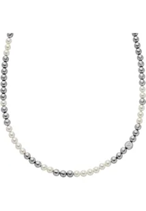 Emporio Armani Męski naszyjnik ze stali nierdzewnej z zapięciem na karabińczyk Szary i biały 57Lx0.8Wxcm