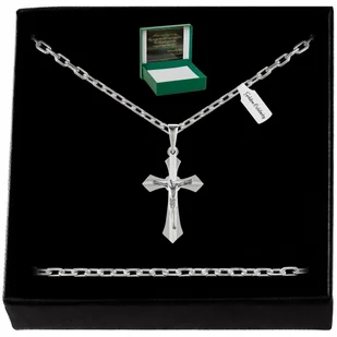 MĘSKI SREBRNY ŁAŃCUSZEK ANKIER + ZAWIESZKA KRZYŻYK 925 PREZENT DLA KUZYNA - Golden Celebrity