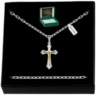 MĘSKI SREBRNY ŁAŃCUSZEK ANKIER + ZAWIESZKA KRZYŻYK PR 925 PREZENT DLA OJCA - Golden Celebrity