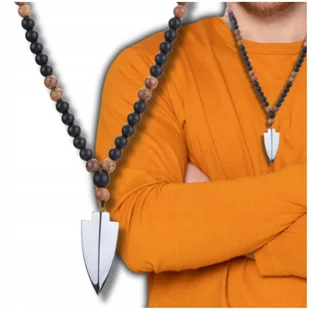 Naszyjnik męski wisiorek z czarnym obsydianem koralikami i grotem hematyt