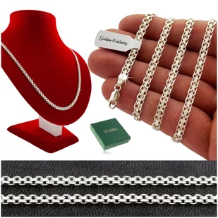 PIĘKNY SREBRNY ŁAŃCUSZEK NASZYJNIK DAMSKI BISMARK 60cm/4mm GRUBY / SOLIDNY - Golden Celebrity