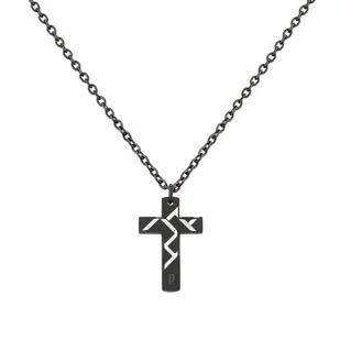 nowoczesny naszyjnik męski wykonany z polerowanej stali szlachetnej, pokryty jonami antracytu, łańcuszek kotwica z zapięciem karabińczykowym i zawieszką z logo, grubość 2,5 mm, długość 50 cm (+ 20 cm), satynowana, pokryta jonami antracytu zawieszka krzyż, z trójwymiarowym wzorem w kolorze srebrnym, rozmiar 24 x 35 mm Łańcuszki marki POLICE JEWELS MUNNAR PJ. 26478PSU-02. kolory czarny. Kolory srebrny. Materiał stal nierdzewna.