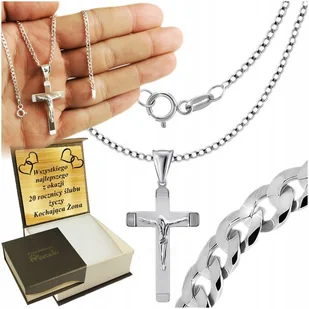 SREBRNY ŁAŃCUSZEK MĘSKI NASZYJNIK PANCERKA SREBRO 925 Z KRZYŻYKIEM GRAWER