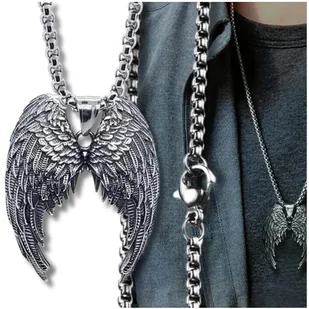 Męski naszyjnik ze skrzydłami anioła - wykonany ze stali nierdzewnejWyjątkowy srebrny naszyjnik ze skrzydłamiWykonany z wytrzymałej stali nierdzewnej, która nie ciemnieje ani nie korodujeIdealny na prezent i do noszenia na co dzieńMateriał: stal chirurgicznaKolor: srebrnyZapięcie: zapięcie karabińczykoweWymiary: Długość: 60 cmWymiary zawieszki: