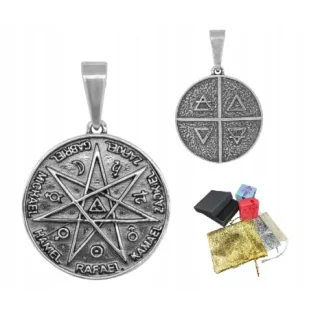 Srebrny medalik siedmiu Archaniołów – potężny symbol opieki, światła i duchowej ochronyTen wyjątkowy medalik wykonany ze srebra próby 925 z efektownym oksydowaniem to nie tylko piękna ozdoba, ale przede wszystkim symbol głębokiej duchowej mocy. Jego centralnym elementem jest starannie odwzorowana gwiazda, wokół której umieszczono imiona siedmiu Archaniołów: Michaela, Gabriela, Rafaela, Uriel, Zaphiela, Zadkiela oraz Camaela. Każdy z nich tradycyjnie odpowiada za inną sferę życia – od ochrony i przewodnictwa, po uzdrowienie, mądrość i wewnętrzny spokój.Oksydowana powierzchnia podkreśla głębię reliefu, dodając całości szlachetnego, lekko antycznego charakteru. Bogato zdobione symbole umieszczone w centrum medalika przyciągają wzrok, tworząc harmonijną i symbolicznie pełną kompozycję. Mocny, solidny uchwyt zapewnia wygodne noszenie na dowolnym łańcuszku, a trwałe wykonanie sprawia, że to biżuteria, która posłuży przez wiele lat.Dlaczego warto wybrać ten medalik?Potężna symbolika - siedmiu Archaniołów to siedem energii wspierających, chroniących i prowadzących w codzienności.Srebro 925 z oksydacją - szlachetny materiał i staranne przyciemnienie pięknie wydobywają każdy detal.Wyjątkowy, bogaty wzór - ozdobne symbole i napisy nadają medalikowi niepowtarzalny charakter.Uniwersalny talizman - dla osób wierzących, duchowo poszukujących lub potrzebujących poczucia ochrony.Idealny prezent - elegancki, symboliczny i pełen głębokiego znaczenia.Parametry: