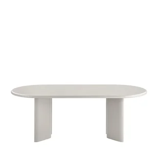 Ten nowoczesny stół jadalny został zaprojektowany, aby stworzyć lekką i stylową atmosferę w Twoim domu. Stół posiada piękny, owalny blat wykonany z gładkiego, matowego materiału, co nadaje mu minimalistyczny i luksusowy wygląd. Solidne, geometryczne nogi podtrzymują blat stołu i tworzą elegancką równowagę pomiędzy funkcjonalnością i estetyką. Idealny wybór dla tych, którzy pragną stylowego i ponadczasowego mebla do jadalni lub salonu.