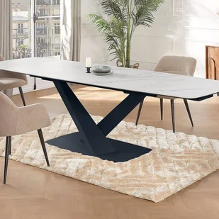 Stół jadalniany MALATA to połączenie niezwykle wytrzymałych materiałów w postaci ceramiki i szkła hartowanego, z których zbudowano blat oraz metalu podstawy. Jego design utrzymano w modnym stylu i eleganckiej formie, a kolor jest imitacją marmuru.