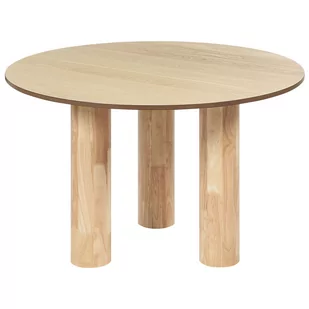 Stół do salonu w stylu rustykalnym. Odśwież wystrój swojej jadalni dzięki temu okrągłemu stołowi. Jego wysokiej jakości blat z płyty MDF posiada wykończenie, które tworzy piękny efekt drewna. Dzięki trzem cylindrycznym, drewnianym nogom, stół ten doskonale komponuje się nowoczesnymi i rustykalnymi wnętrzami. Świetnie sprawdzi się on w każdej jadalni, zarówno na rodzinne posiłki, jak i uroczyste przyjęcia.