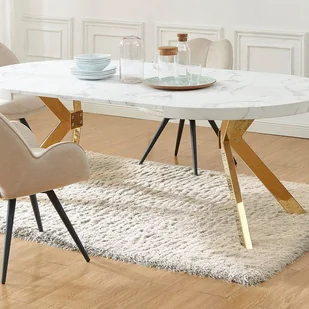Stół do jadalni KOMONI dla 4 do 8 osób wyposażony jest w rozkładany blat z MDF oraz eleganckie, stalowe nogi. Zaokrąglony kształt stołu idealnie wpisze się w każde wnętrze, wnosząc do niego odrobinę przytulności.