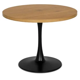 Stół okrągły LINO to doskonały wybór do salonu, jadalni czy kuchni, idealnie wpisujący się w styl loftowy i industrialny. Jego główne zalety to okrągły blat wykonany z wysokiej jakości laminowanej płyty MDF w kolorze dębu złotego, który jest nie tylko elegancki, ale także solidny i łatwy do utrzymania w czystości. Stylowa noga stołu, wykonana z metalu malowanego na czarno, doskonale komponuje się z blatem, tworząc spójną i nowoczesną całość. Stół LINO charakteryzuje się bardzo wysoką jakością wykonania, z dbałością o detale, co sprawia, że wzór drewna prezentuje się perfekcyjnie. Jego modny design sprawia, że jest to mebel, który doskonale wpisuje się w aktualne trendy wnętrzarskie.