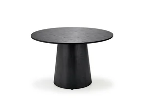 Stół Regin w kolorze czarnym Stół Regin to nowoczesny mebel o wyjątkowym designie i funkcjonalności. Jego okrągły, czarny blat wykonany z okleinowanego MDF-u nadaje mu wyjątkowego charakteru i elegancji. Jego wymiary wynoszą 120 cm średnicy i 77 cm wysokości, co czyni go idealnym rozwiązaniem zarówno dla 5-osobowej, jak i 4-osobowej rodziny. Stół Regin został wykonany z wysokiej jakości MDF-u, który zapewnia trwałość i solidność konstrukcji. Stelaż z jedną nogą gwarantuje stabilność, a jednocześnie dodaje mu oryginalności.