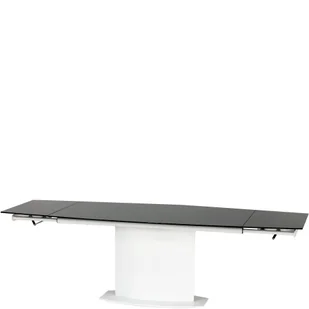 Stół rozkładany 160-200 x 90 x 76 ANDERSONDo eleganckiego wnętrza jadalni lub salonu potrzebujesz równie eleganckiego stołu? Model Anderson firmy Halmar spełni wszystkie Twoje oczekiwania. To nowoczesność w każdym calu, ponadczasowe połączenie czerni i bieli, stali i szkła. Delikatnie zaoblony blat rozkłada się do długości aż 250 cm, dzięki czemu pomieści wszystkich Twoich gości. Solidna kolumnowa noga zapewnia optymalną stabilność dla długiego blatu, a jej wysokość (76 cm) gwarantuje komfort użytkowania. Stół Anderson doskonale prezentuje się zarówno w towarzystwie tapicerowanych krzeseł, jak i mobilnych foteli.