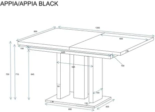 Stół rozkładany APPIA 130(210)x80 dąb artisan/czarny mat