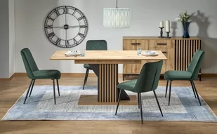 KolumnaLiczba nóg: 1 Stół do jadalni BordasStół do jadalni Bordas to eleganckie i funkcjonalne rozwiązanie do nowoczesnych wnętrz, łączące praktyczny design z estetycznym wyglądem. Ten prostokątny, rozkładany stół został zaprojektowany tak, aby sprostać potrzebom zarówno małych, jak i dużych spotkań towarzyskich, dzięki czemu jest idealny dla 4 do 6 osób. Laminowana płyta wiórowa, z której wykonany jest stół, zapewnia trwałość i odporność na zarysowania i zużycie, dzięki czemu nadaje się do codziennego użytku. Jego powierzchnia wiernie imituje naturalne drewno.