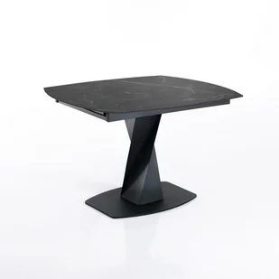 Stół rozkładany TWISTED BLACK MARBLE - Podstawa z matowego, czarnego metalu - Blat z ceramiki o grubości 10 mm z matowym, czarnym, marmurowym wykończeniem - Przedłużenia umieszczone pod blatem - Wys. 77 x Gł. 88 x Dł. 105 cm - Wys. 77 x Gł. 88 x Dł. 135 cm (pierwsze przedłużenie) - Wys. 77 x Gł. 88 x Dł. 165 cm (drugie przedłużenie)