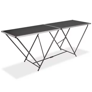 Stół ten ma ramę wykonaną z mocnego i lekkiego aluminium oraz blat z łatwego do czyszczenia MDF. Może on utrzymać do 20 kg obciążenia. Jego nogi ze stalowych rurek mają kształt litery W i zapewniają trwałość i stabilność. Stół można złożyć, dzięki czemu łatwo go przenieść i przechowywać, kiedy nie jest w użyciu.