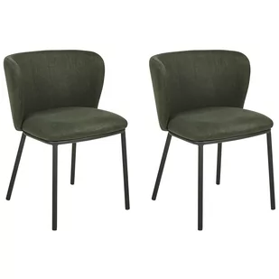 Zestaw krzeseł jadalnianych bez podłokietników. Spraw, by twoja jadalnia wyróżniała się dzięki temu stylowemu zestawowi krzeseł tapicerowanych. Wykonane z trwałego materiału strukturalnego w ciemnozielonym kolorze i z czarnymi, metalowymi nogami, te krzesła służyć ci będą przez wiele lat, gwarantując komfort i ozdabiając mieszkanie. Oba krzesła mają nieco zakrzywione oparcia, dzięki czemu są bardzo wygodne, a dzięki brakowi podłokietników, możesz wsunąć je pod stół, aby zaoszczędzić miejsce, gdy nie są potrzebne. Szczegóły: Typ produktu: