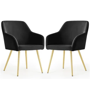 2x Welurowe krzesło tapicerowane gładkie Czarne ESTELLE Złote nogi