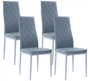KRZESŁA SPRZEDAWANE TYLKO W ZESTAWIE - 4 SZTUKI! Nowoczesne skórzane krzesła z modnym pikowaniem w romby. Wysokie oparcie i wąskie siedzenie sprawia, że idealnie prezentują się przy każdym stole. Miękkie siedzenie – z podwójną pianką wypełniającą – sprawi, że siedzenie na nich to sama przyjemność. Delikatne metalowe nóżki sprawiają, że krzesła pasują do każdego stołu czy biurka. Model ten sprawdzi się także w różnego rodzaju punktach usługowych.