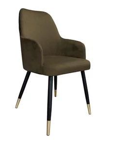 Drewniany stelaż oraz metalowe nogi zapewniają krzesłu stabilność.