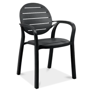 Krzesło Nardi PALMA Antracite - Stylowe krzesło ogrodowe, które będzie nie tylko zgrabnym ozdobnikiem, lecz przede wszystkim praktycznym meblem. Takim, który zachowa pełną funkcjonalność oraz atrakcyjny wygląd przez nadzwyczaj długi czas - praktycznie niezależnie od warunków użytkowania. A to dzięki najwyższej jakości materiałom użytym do produkcji i perfekcyjnemu wykonaniu. Dla krzesła Nardi Palma właściwie żadne warunki nie będą zbyt trudne. Sztuczna żywica wzbogacona o włókno szklane wytrzymuje wszelkie opady i temperatury.