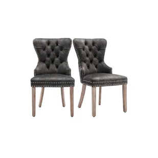 Eleganckie krzesło do jadalni z aksamitu ze srebrnymi guzikami, oparciem w stylu retro, wyściełanym siedziskiem i nogami z litego drewna
