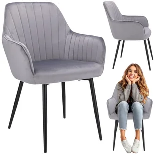 KRZESŁO welurowe TAPICEROWANE do salonu CORA kuchni jadalni szare JUMIhome