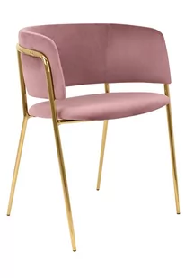 Krzesło DELTA różowe. Siedzisko i oparcie tapicerowane są miękkim i przyjemnym w dotyku welurem. Mocna, stabilna konstrukcja została wykonana z metalu w złotym, błyszczącym kolorze. Gładkie oparcie w połączeniu z nowoczesną kolorystyką sprawiają, że Delta świetnie odnajdzie się we wnętrzach klasycznych, jak również w stylu Glamour. Wymiary: wys. 76 cm / szer. 58 cm / gł. 54 cm Wysokość do krawędzi siedziska: 46 cm Wysokość do podłokietników: 73 cm Podłokietniki: dł. 26 cm Oparcie: wys. 30 cm / szer. 42 cm Rozstaw nóg: szer. 54 cm / gł. 47 cm Waga netto: 6,5 kg Wymiary opakowania: 61 cm / 77 cm / 60 cm.