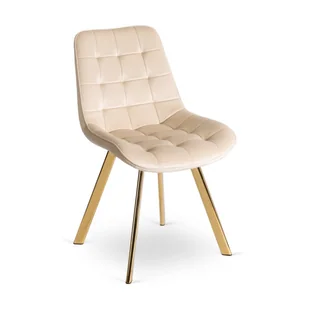 Jego główne zalety to wygoda i stabilność, które zapewnia miękkie wypełnienie z pianki tapicerskiej oraz solidna konstrukcja. Tapicerka wykonana jest z wysokiej jakości tkaniny typu velvet, która jest odporna na ścieranie i zabrudzenia, a jednocześnie przyjemna w dotyku. Dzięki temu krzesło jest doskonałym wyborem dla rodzin z dziećmi oraz właścicieli zwierząt domowych, ponieważ łatwo je utrzymać w czystości. Krzesło wyróżnia się ozdobnym pikowaniem, które dodaje mu elegancji i stylu. Chromowane nogi w złotym kolorze, wykonane z metalu, są ustawione pod kątem do podłoża, co zapewnia znakomitą stabilność i nowoczesny wygląd.