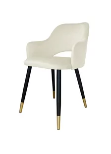 Krzesło Milano noga czarna/złota MG50 kremowy Wygodne krzesło tapicerowane aksamitną tkaniną na drewnianym stelażu, z pewnością odpowiada współczesnym wymaganiom jaki są bezwzględnie: jakość, wygoda oraz design. Wysoki komfort użytkowania zapewni Państwu ergonomiczne, bardzo dobrze wyprofilowane oparcie. Pojedyncze nogi krzesła wykonane zostały z metalu. Dane techniczne: