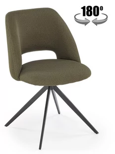 Krzesło tapicerowane K546 z funkcją obrotu o 180° do jadalni Nowoczesne krzesło K546 z obracanym siedziskiem o 180° to doskonały dodatek do każdego wnętrza, zapewniający nie tylko stylowy wygląd, ale także wygodę użytkowania. Krzesło tapicerowane tkaniną membranową w modnym oliwkowym kolorze, to idealna propozycja dla osób ceniących komfort, funkcjonalność oraz nowoczesny design. Tkanina membranowa charakteryzuje się doskonałą przepuszczalnością powietrza i jest bardzo przyjemna w dotyku. Dzięki wygodnemu oparciu i stabilnej konstrukcji, krzesło zapewnia odpowiednie podparcie pleców i komfort podczas siedzenia. Metalowe nogi malowane proszkowo na czarno gwarantują trwałość i solidność oraz bezpieczeństwo podczas ich użytkowania.