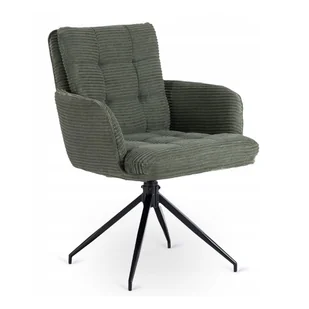 Krzesło obrotowe AKITA Zielone to połączenie nowoczesnego designu i wygody codziennego użytkowania. Siedzisko o wymiarach 55 × 43 cm i wysokości 49 cm w miękkim, zielonym sztruksie zapewnia komfort nawet przy długim siedzeniu, a obrotowa funkcja 360° z autoreturn umożliwia pełną swobodę ruchu i automatyczny powrót do pozycji wyjściowej. Metalowy, czarny stelaż gwarantuje stabilność i trwałość, a sztruksowa tapicerka jest przyjemna w dotyku i odporna na intensywne użytkowanie. Dzięki eleganckiemu kolorowi i starannemu wykonaniu krzesło Akita świetnie sprawdzi się w jadalni, salonie czy biurze, wprowadzając do wnętrza świeży, designerski akcent.