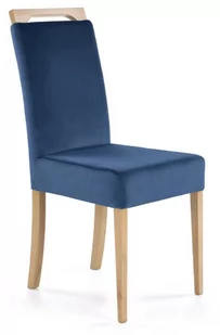 Tapicerowane krzesło CLARION na drewnianych nogachNowoczesne krzesło CLARION to produkt polski o klasycznym designie pasującym do wielu różnorodnych aranżacji. Krzesło jest niezwykle wygodne dzięki tapicerowanemu oparciu oraz siedzisku. Do obicia tych elementów wykorzystano miękką tkaninę typu VELVET w modnym granatowym kolorze. Zaletą tkaniny jest jej duża wytrzymałość i odporność na ścieranie w porównaniu z tapicerkami z ekoskóry. Krzesło w górnej części oparcia posiada uchwyt pozwalający na łatwe przesuwanie oraz przenoszenie krzesła.
