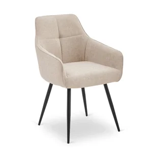 Krzesło tapicerowane PALMA w eleganckim, beżowym kolorze to połączenie wygody i stylu, które wprowadzi ciepło i harmonię do każdego wnętrza. Jego siedzisko o szerokości 44 cm i głębokości 46 cm, umieszczone na wysokości 50 cm, wypełnione jest sprężynami, co zapewnia komfortowe i długotrwałe użytkowanie. Całość wspiera stabilny, czarny, metalowy korpus, a wysokość krzesła wynosi 85 cm, przy szerokości 54 cm i głębokości 61,5 cm, co gwarantuje wygodną przestrzeń do siedzenia zarówno przy stole, jak i w strefie relaksu. Oparcie krzesła jest ergonomicznie wyprofilowane, oferując prawidłowe podparcie pleców, a tapicerka jest miękka w dotyku, łatwa w pielęgnacji i odporna na codzienne użytkowanie. Stylowe połączenie beżowej tkaniny z czarnymi, metalowymi nogami nadaje krzesłu nowoczesny charakter, sprawiając, że doskonale wpasuje się w aranżacje klasyczne, nowoczesne, a także do lokali gastronomicznych.