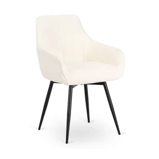 Krzesło obrotowe tapicerowane LARISA w kremowym kolorze łączy elegancję, nowoczesny design i funkcjonalność. Jego siedzisko o szerokości 42 cm, głębokości 46 cm i wysokości 52 cm oraz całkowite wymiary krzesła 90 cm wysokości, 60 cm szerokości i 60 cm głębokości zapewniają wygodę nawet podczas długiego użytkowania. Tapicerka z miękkiej tkaniny boucle dodaje wnętrzu przytulności i subtelnej elegancji, a ergonomicznie wyprofilowane siedzisko w połączeniu z podłokietnikami gwarantuje komfort codziennego siedzenia. Krzesło LARISA posiada obrotowe siedzisko 360°, co zwiększa funkcjonalność i swobodę ruchu, a solidne metalowe nogi w kolorze czarnym zapewniają stabilność i trwałość konstrukcji. Zabezpieczenia na nóżkach chronią podłogę przed zarysowaniami, dzięki czemu krzesło zachowuje estetyczny wygląd przez długi czas.