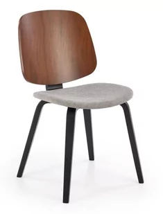 designerskie krzesło do jadalni,oparcie krzesła z giętkiej sklejki w kolorze orzech,tapicerowane siedzisko tkaniną w kolorze szarym,cztery solidne nogi z litego drewna kauczukowego w kolorze czarnym,do samodzielnego montażu,w swojej ofercie posiadamy szeroki wybór mebli pozwalających na kompleksowe wyposażenie mieszkania. Informacje o produkcie Szerokość: 54 Wysokość: 81 Głębokość: 45 Waga: Materiał: sklejka, metal, tkanina Rodzaj regulacji: