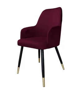 Krzesło WESTA noga czarna/złota MG02 śliwka Krzesło WESTA prezentuje klasykę w nowoczesnym wydaniu. Siedzisko przypomina kształtem fotel, zapewnia plecom wygodne podparcie. Drewniany stelaż oraz metalowe nogi zapewniają krzesłu stabilność. Nasze krzesła wykonujemy z atestowanych tkanin wysokiej jakości. Dzięki bogatej kolorystyce krzesło Westa znajdzie swoje miejsce niemal w każdym pomieszczeniu.