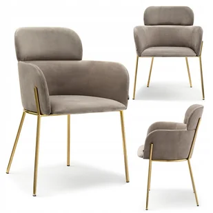 Krzesło Z Podłokietnikami Biagio Welur Beż Złote Nogi Styl Glam