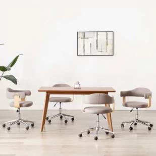 Ten zestaw 4 obrotowych krzeseł stołowych, prezentujący stylowy i współczesny design, jest praktycznym i nowoczesnym dodatkiem do dowolnego salonu, sypialni, kącika wypoczynkowego lub biura. Mebel zapewnia optymalny komfort podczas rodzinnych kolacji, czytania lub odpoczynku w salonie. Siedzisko i oparcie są ergonomicznie zaprojektowane oraz tapicerowane miękką tkaniną, zapewniając wyjątkową wygodę. Drewniana rama i stalowe nogi zwiększają trwałość i wartość estetyczną krzesła. Mebel obraca się o 360 stopni.