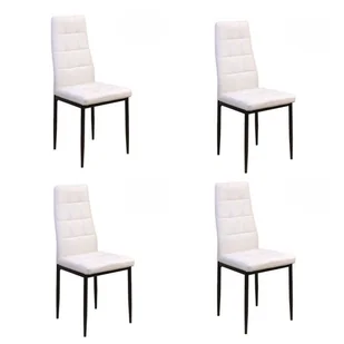 Na oparciu i siedzeniu są wyściełane szwy dla większego komfortu. Czarne metalowe nogawki dla nowoczesnego i wytrzymałego wykończenia. Jest serwowany w pudełkach po 4 jednostki, aby ułatwić zakup. Wymiary: Całkowite wymiary: 43 cm (szerokość) x 56 cm (głębokość) x 96 cm (wysokość).
