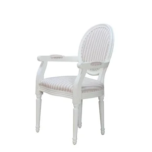Krzesło do jadalni w stylu rokoko/Amaretta z podłokietnikami w kolorze antycznej bieli, antyczne patynowane tkaniną w beżowe paski to krzesła stołowe w kolorze białym, które wnoszą do Twojego domu zarówno styl, jak i funkcjonalność. Piękne klasyczne krzesło w stylu romantycznym z podłokietnikami w kolorze antycznej bieli z beżową tkaniną w paski. Krzesło dostępne jest również w innych kolorach z podłokietnikami i bez. Każde krzesło jest wykonywane ręcznie, co nadaje każdemu krzesłu niepowtarzalny wygląd. Od siedziska do górnego podłokietnika: