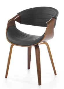 Materiały z gwarancją jakości Konstrukcja: Wykorzystanie naturalnej giętej sklejki zapewnia lekkość konstrukcji przy zachowaniu wysokiej wytrzymałości. Tapicerka: Wysokiej jakości ekoskóra jest łatwa w czyszczeniu, odporna na ścieranie i przyjemna w dotyku. Detale: Zjawiskowe połączenie ciepłej barwy orzecha z klasyczną czernią tapicerki nadaje krzesłu wyrazistego chrakteru. 2 modne kolory: