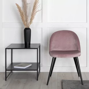Kolor: czerń i zgaszony róż Materiał ramy: malowany proszkowo metal Materiał obicia: aksamit poliestrowy 100% Nowoczesny design Zaokrąglone oparcie i siedzisko Miękkie wypełnienie Maksymalne obciążenie: 110 kg Prosty montaż Wymiary: Wymiary całkowite: