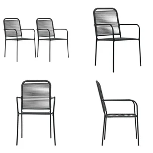 Krzesła ogrodowe 2 szt. Bawełniana lina i stal w kolorze czarnymTen zestaw 2 minimalistycznych krzeseł oferuje wysoki poziom komfortu i relaksu i jest idealny do każdego nowoczesnego, klasycznego lub tradycyjnego obszaru zewnętrznego. Zestaw krzeseł wykonany jest z bawełnianej liny i malowanych proszkowo stalowych ram. Dzięki temu jest nie tylko wytrzymały, ale także odporny na warunki atmosferyczne i promienie UV. Te krzesła ogrodowe są łatwe w montażu.
